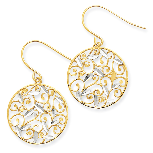 14K & Rhodium Diamond-cut Filigree Circle Wire Earrings