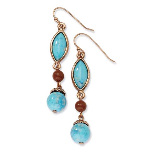 Copper-tone Aqua & Brown Beads Dangle Earrings