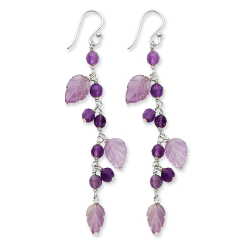 Sterling Silver Amethyst Leaves Dangle Earrings