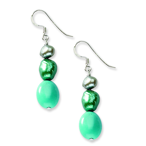 Sterling Silver Green Turquoise/Green Freshwater Cultured Pearl Earrings