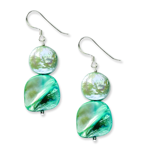 Sterling Silver Light Blue Mother of Pearl & Fresh Water Cultured Pearl Earrings
