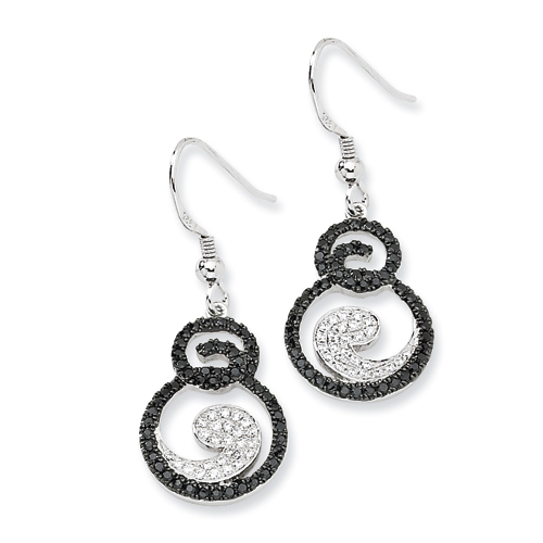 Sterling Silver White & Black Diamond Fancy Dangle Earrings