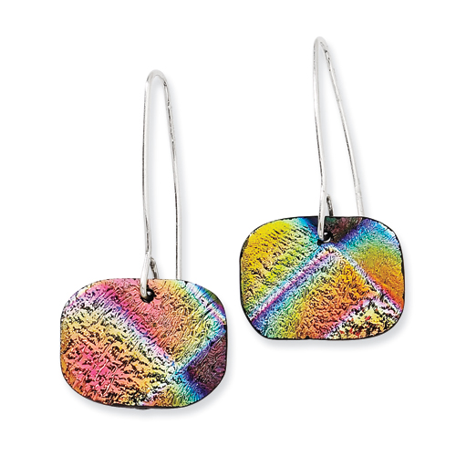 Sterling Silver Yellow, Blue & Red Round Dichroic Glass Dangle Earrings"