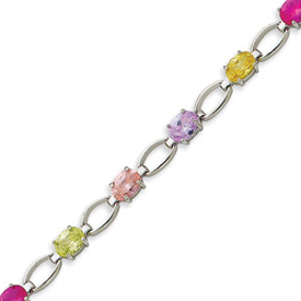 Sterling Silver 7.25'' Multicolored CZ Bracelet