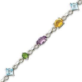 Picture of Sterling Silver 7.75''  Multi-Colored Gemstones Bracelet