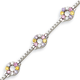 Sterling Silver 7'' Multicolor CZ Bracelet