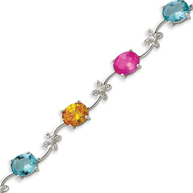 Picture of Sterling Silver 7''  Multicolor CZ Floral Bracelet