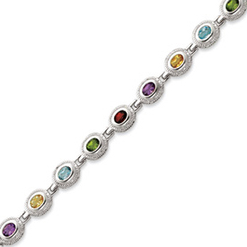 Picture of Sterling Silver 7''  Rainbow Semi Precious Stone Bracelet