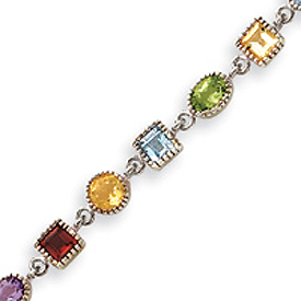 Picture of Sterling Silver 7''  Rainbow Semi Precious Stone Bracelet