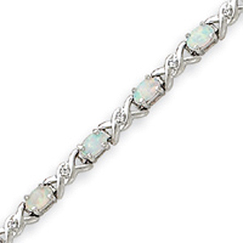 Sterling Silver 7'' White Created Opal And CZ Bracelet