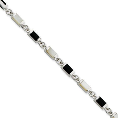 Sterling Silver 7inch Fancy Onyx & Mother Of Pearl Bracelet