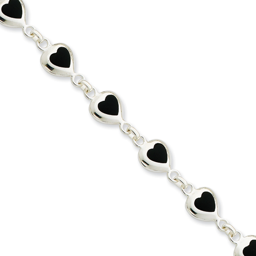 Picture of Sterling Silver 7inch Fancy Polished Heart Onyx Bracelet