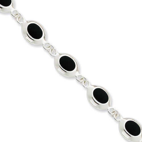 Sterling Silver 7inch Fancy Polished Onyx Bracelet