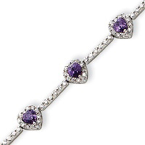 Sterling Silver Amethyst And Clear CZ Heart Bracelet