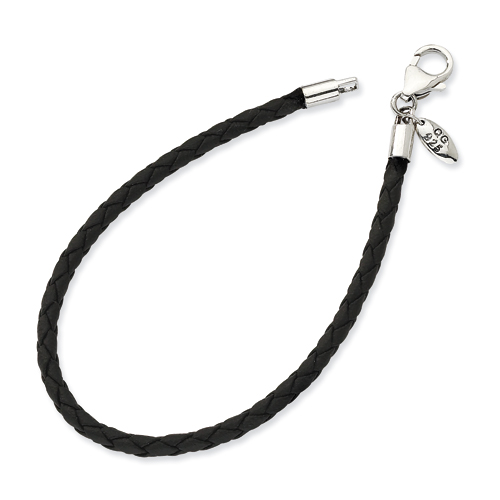 Picture of Sterling Silver Black Leather Bead Bracelet anklet