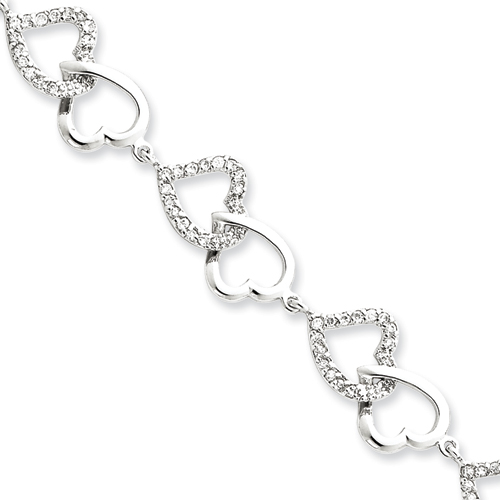 Sterling Silver Polished 3-D Heart Link Bracelet