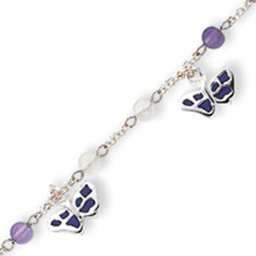 Sterling Silver Enameled Butterflies Clear & Purple Beaded Bracelet