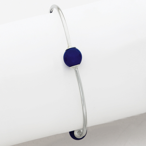 Picture of Sterling Silver Lapis Bead Stretch Bangle Bracelet