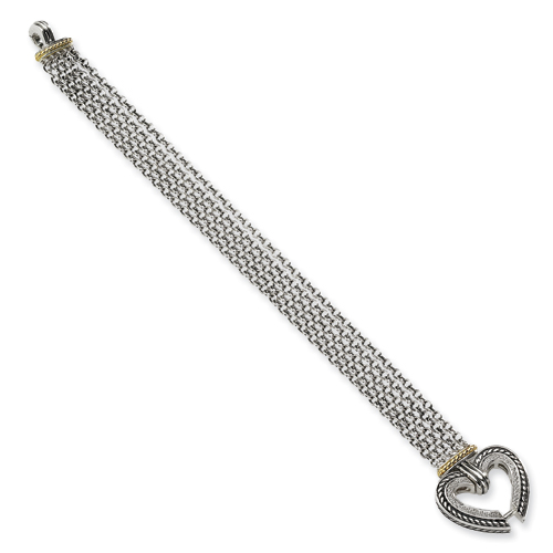 Sterling Silver w/14ky Rolo Link Diamond Heart 7.75in Bracelet