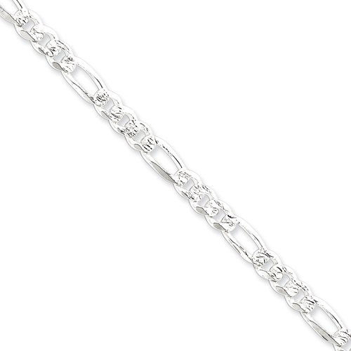 Sterling Silver 5.5mm Pave Flat Figaro Chain bracelet