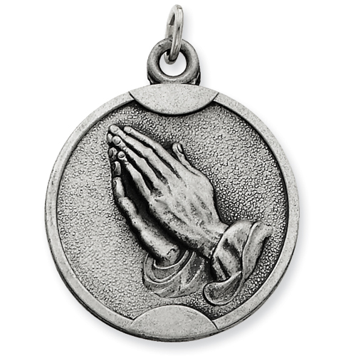 Sterling Silver Antiqued Praying Hands Pendant