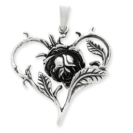 Picture of Sterling Silver Antiqued Rose Heart Pendant