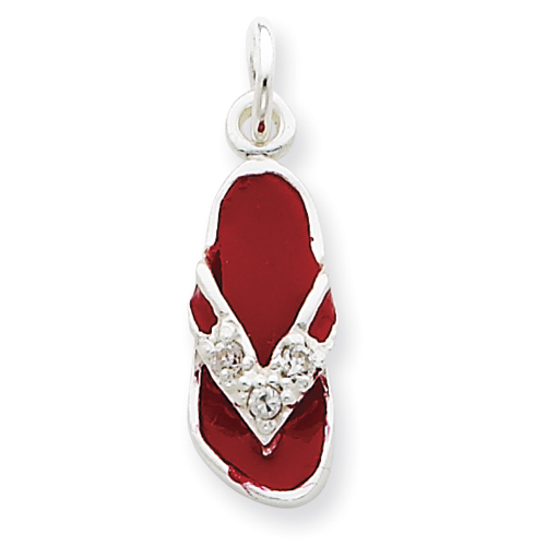 Sterling Silver CZ and Red Enameled Flip Flop Charm