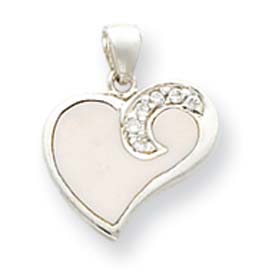 Picture of Sterling Silver CZ And White Enameled Heart Pendant