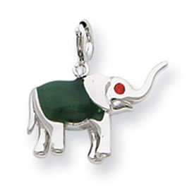 Sterling Silver CZ Green Enameled Elephant Charm