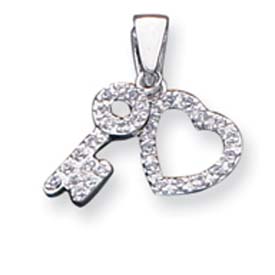 Sterling Silver CZ Heart & Key Fancy Pendant