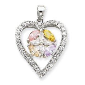 Sterling Silver Red & Yellow CZ Circle Pendant