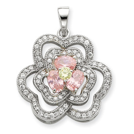 Sterling Silver CZ Fancy Chain Slide Pendant