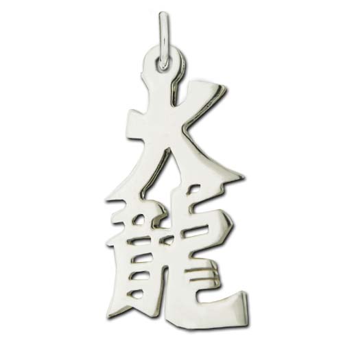 Sterling Silver "Fire Dragon" Kanji Chinese Symbol Charm