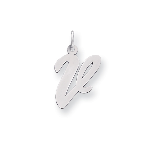 Sterling Silver Large Script Intial V Charm