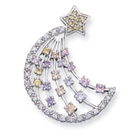 Picture of Sterling Silver Multi-Color CZ Moon And Star Slide