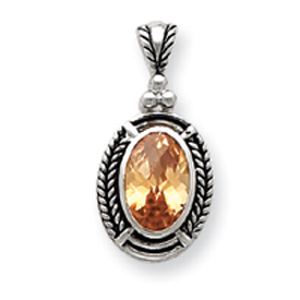 Picture of Sterling Silver Oval Champagne CZ Pendant