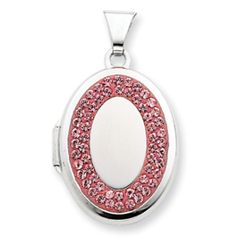 Sterling Silver Oval Light Rose Crystal Recess Locket