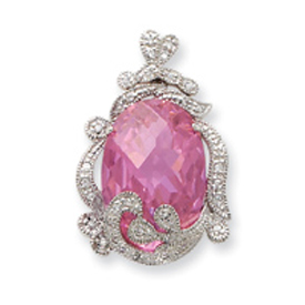 Sterling Silver Pink And Clear CZ Pendant Slide