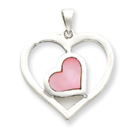 Picture of Sterling Silver Pink Enameled Heart In Heart Pendant