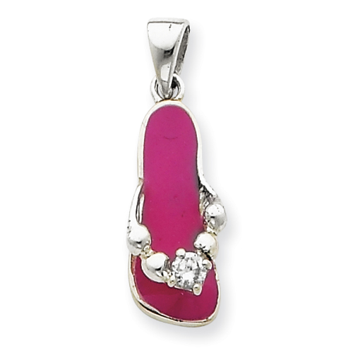 Sterling Silver Pink Flip Flop with CZ Pendant