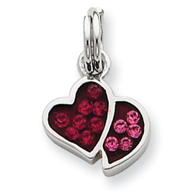 Picture of Sterling Silver Pink & Red CZ Hearts Charm