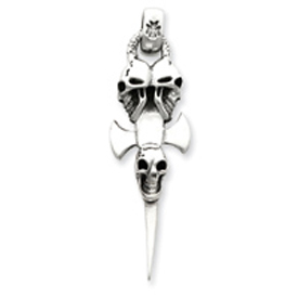 Sterling Silver Skulls On Sword Pendant