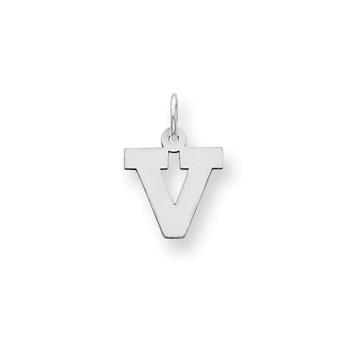 Sterling Silver Small Block Intial V Charm