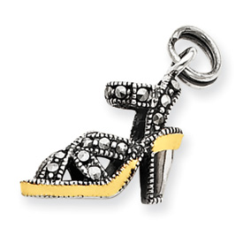 Sterling Silver Yellow Enamel & Marcasite Shoe Charm
