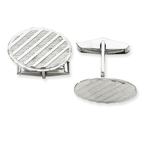 Sterling Silver and Black Enamel Grooved Design Square Cuff Links