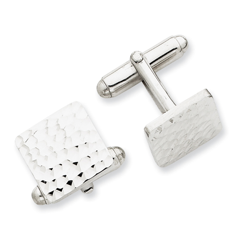 Sterling Silver Diamond-cut Square Cuff Links