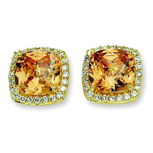 Gold-plated Sterling Silver Rose-cut Champ Cubic Zirconia Square Post Earrings