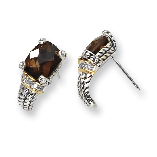Sterling Silver/14ky Diamond and Smokey Quartz Post Earrings