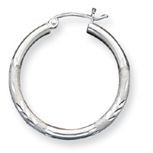Sterling Silver 2.50mm Satin Diamond-Cut Hoop Earrings