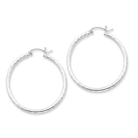 Sterling Silver 2mm Diamond Cut Hoop Earrings